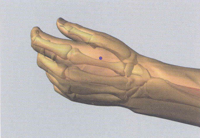 Tú puedes tratar este problema aplicando una presión moderada sobre el llamado punto IG 4 (Intestino Grueso 4). Se trata de un punto de acupuntura que también se utiliza en el masaje Zen Shiatsu y que sirve para que puedas aplicarlo por tus propios medios. Sólo tienes que presionar el área que se encuentra entre los dedos pulgar e índice de cada mano (ver ilustración de arriba), usando la yema del dedo pulgar de la mano opuesta (ver foto de abajo). Al ubicarlo, vas a sentir al tacto la primera falange del dedo índice que te va a servir como referencia de que diste con el lugar indicado.